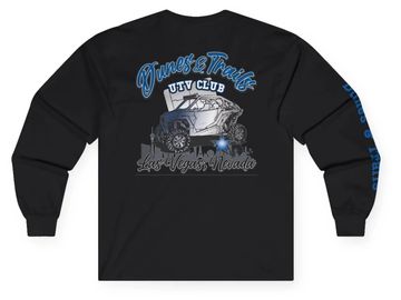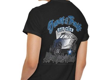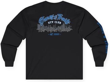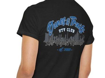 View of back of shirt. Available in black or white. Dunes and Trails along sleeve and small logo on front as well.